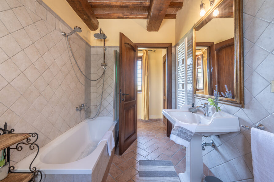La camera Lepre è un rifugio romantico con affaccio sull’alba e sulle colline che circondano Todi. Elegante e intima, ha un bagno privato con vasca e prende il nome dagli agili abitanti del bosco che spesso si intravedono all’alba, tra i campi e i sentieri silenziosi.