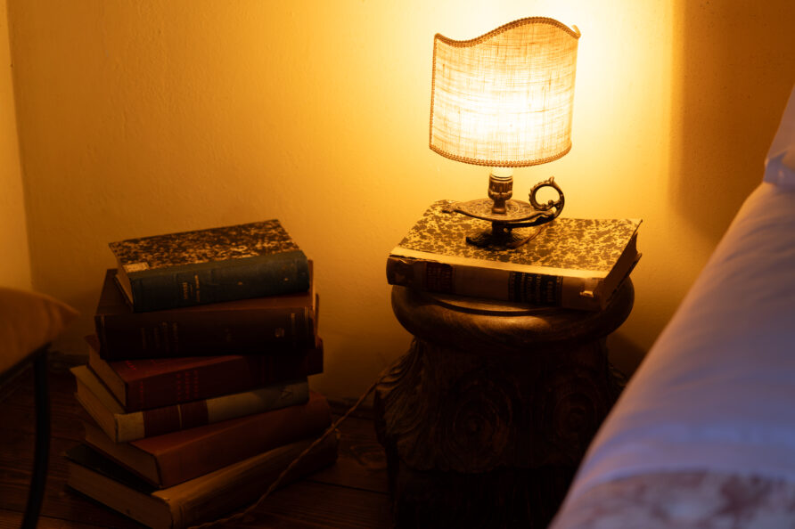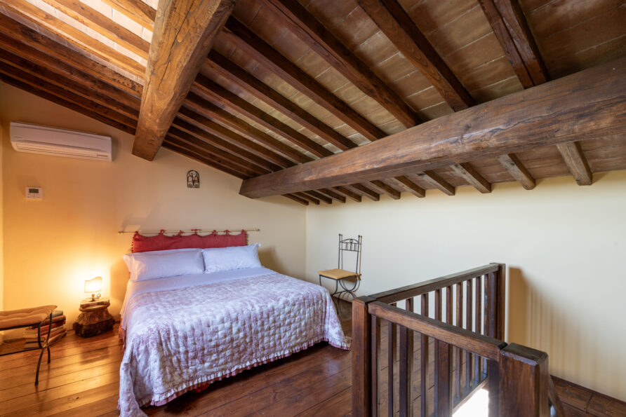 La Suite delle Aquile è una camera luminosa situata nella torre, il punto più alto della casa, da cui lo sguardo spazia libero sull’intero panorama umbro. Dotata di salotto e piccola cucina, è un nido elegante sospeso tra cielo e terra, perfetto per colazioni intime e momenti di quiete. Prende il nome dall’aquila, regina dell’aria e simbolo di Todi, che dall’alto veglia silenziosa sulla vallata.